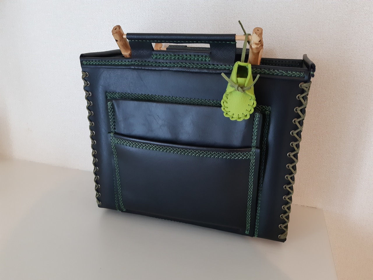 愛らしい緑とモダンなデザインの「シューズ型バッグチャーム」